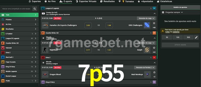 A aposta 7p55 oferece aos jogadores a experiência mais conveniente de apostas em eSports!